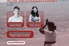 Prodi Pariwisata FIB UGM menggelar syukuran Dies Natalis ke-15 pada Jumat, 6 Desember 2024 di Auditorium Gedung Soedondo Lt. 7 FIB UGM. Acara ini dihadiri para dosen dan tendik Prodi Pariwisata, mahasiswa, alumni, dan mitra. Dalam kesempatan peringatan Dies Natalis ke-15 ini juga diselenggarakan diskusi dalam rangka evaluasi terkait langkah-langkah yang telah ditempuh dan mempersiapkan Prodi Pariwisata FIB UGM untuk masa depan yang lebih gemilang baik secara akademis maupun dengan industri pariwisata.